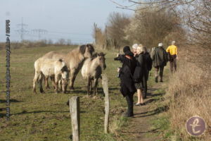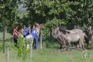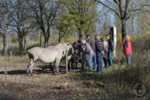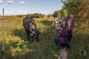Die Weideflächen mit Rindern, Büffeln und Pferden stoßen bei Besuchern auf viel Interesse, die dann mehr über das Leben der Weidetiere und die Landschaftspflege erfahren möchten. Die Mitglieder der Bürger-Initiative sind vor Ort, um über den Hintergrund der Weidelandhaltung, der Projekte und des öffentlichen “Mustergut” Hobrechsfelde zu informieren.